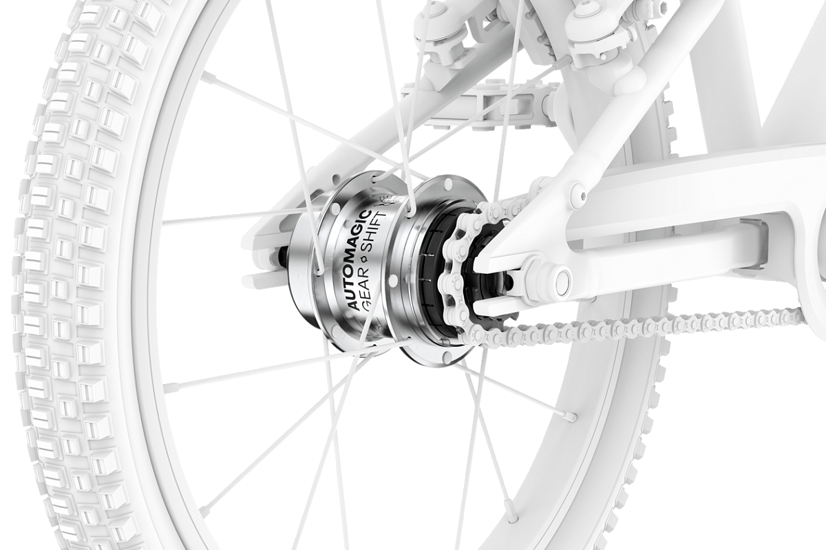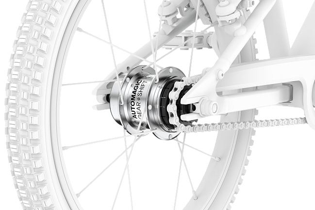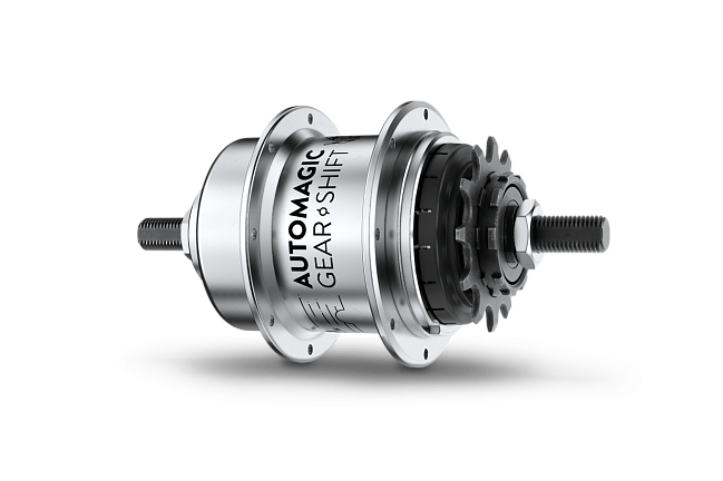 Планетарная втулка со скрытым механизмом автоматического переключения. Самостоятельно переходит на вторую передачу при достижении скорости ~11 км/ч. Ребенку не нужно отвлекаться на манетки: старт легкий за счет пониженной передачи, а на прямых можно ехать быстро, не «забалтываясь». Закрытая система абсолютно не требует обслуживания.
