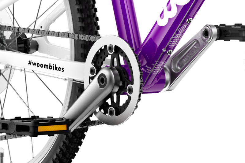 Woom ORIGINAL 4 — детский велосипед австрийского бренда Woom, спроектированный для ребят 6–8 лет. Алюминиевая рама и облегчённые колёса снижают вес до ≈ 7,7 кг, что примерно на 40 % легче обычных 20-дюймовых моделей. Низкая верхняя труба, длинная база и ограничитель руля помогают ребёнку быстрее почувствовать баланс. Семискоростная трансмиссия microSHIFT с удобным триггером облегчает подъемы и ускорения, а две V-brake-колодки с «зелёной» ручкой учат правильному торможению маленькими пальцами.