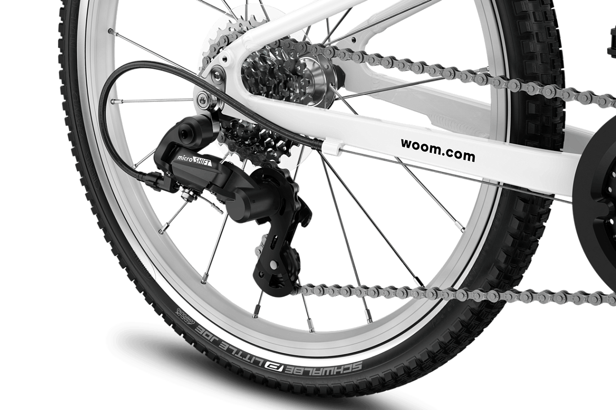 Woom GO 4 20" — это сверхлегкий и универсальный велосипед для детей 6–8 лет (на рост 115–130 см), который открывает совершенно новые горизонты благодаря появлению передач! Теперь ребенок сможет без труда преодолевать подъемы и быстрее ехать по прямой с помощью 7-скоростной трансмиссии microSHIFT с удобным шифтером-«крутилкой». При появлении скоростей байк сохранил феноменальную легкость — его вес составляет всего около 7,8 кг. Фирменная геометрия алюминиевой рамы с заниженной трубой, удобный высокий руль в BMX-стиле и надежные ободные тормоза (V-brake) с детскими ручками гарантируют полный контроль над велосипедом. А качественные накатистые покрышки Schwalbe Little Joe сделают каждую семейную велопрогулку долгой, легкой и комфортной.