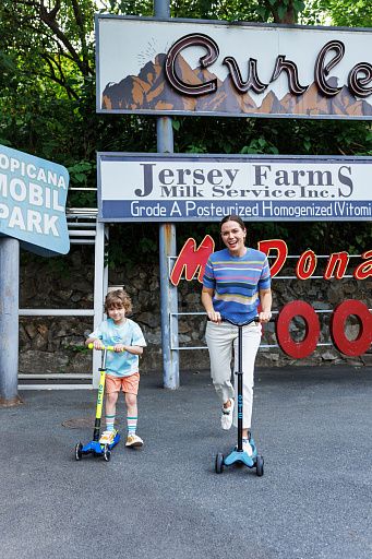 Широкая нескользящая платформа ~17 см, передние колёса 120 мм. Регулируемый руль от 72 до 101 см. Нагрузка до 100 кг.