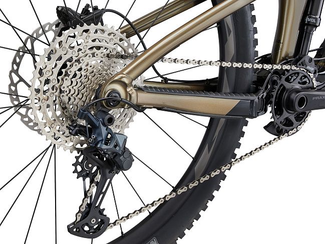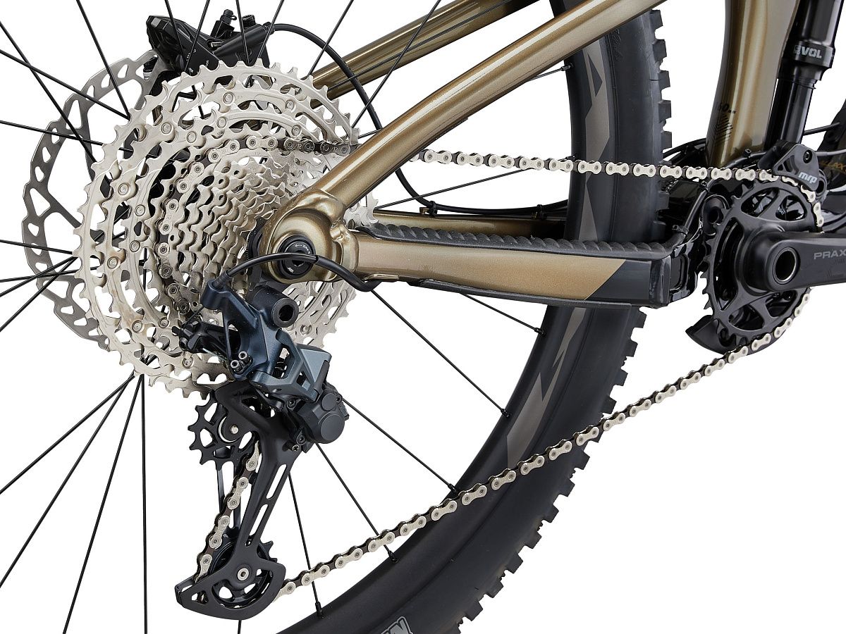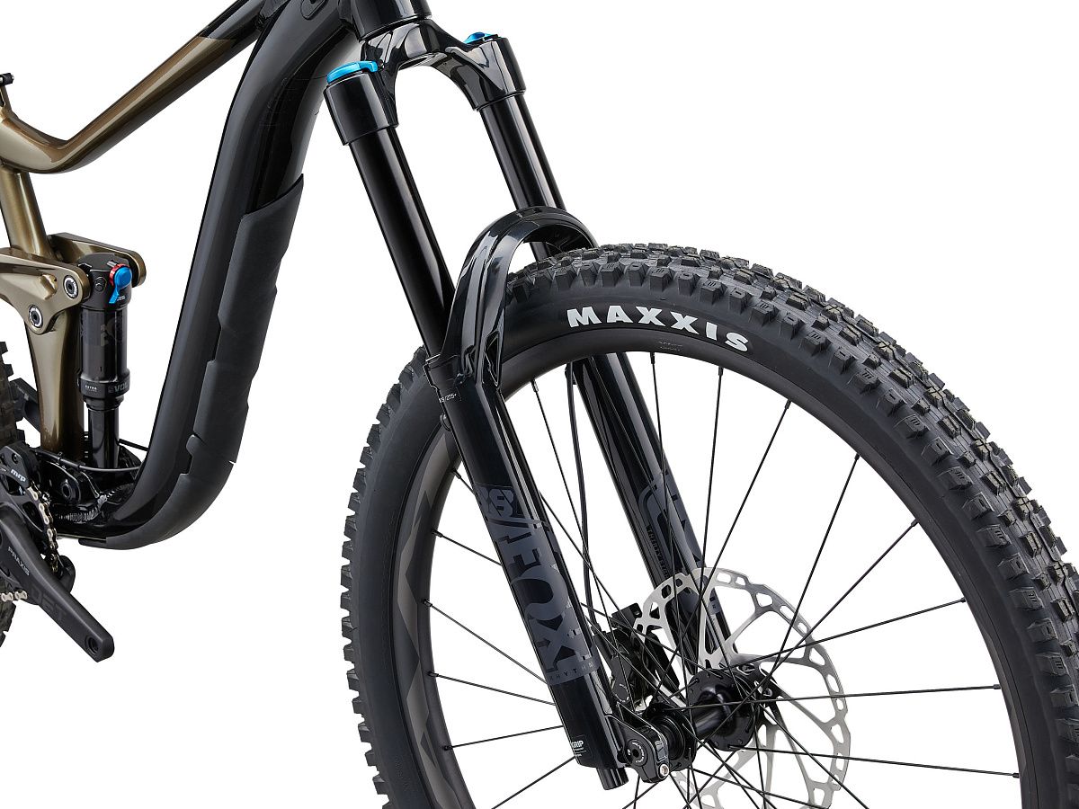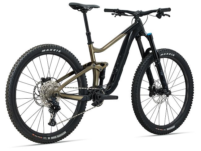 Оснащение спортивного уровня: трансмиссия Shimano 1×12 (SLX/Deore) с кассетой 10–51 и системой 32T, тормоза Deore MT520 с роторами 220/200 мм. Колёса Giant AM 29 шириной 30 мм с покрышками Maxxis Assegai 2.5 / Minion DHR II 2.4; сквозные оси 15×110 и 12×148, дроппер Contact Switch 125–170 мм. Вес около 16 кг.