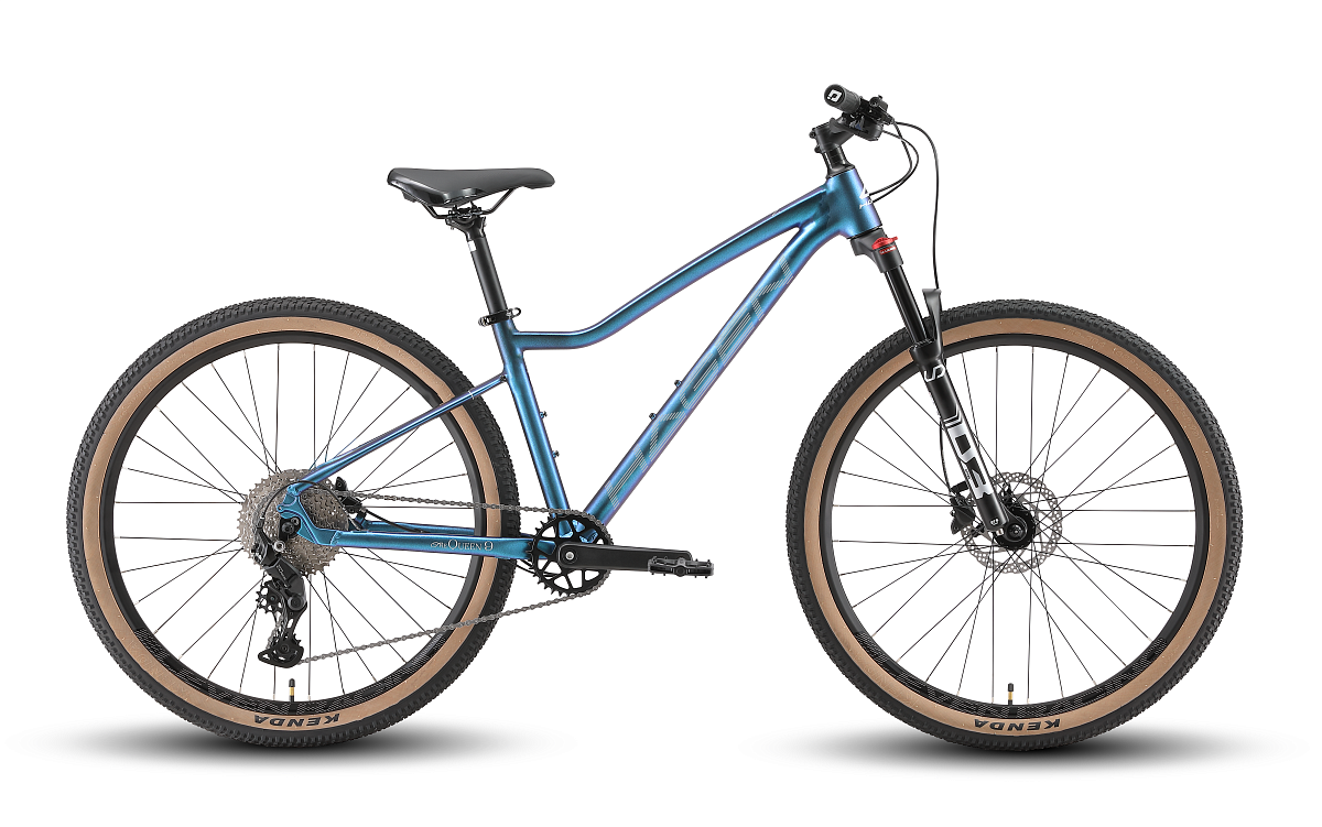 Золотая середина женской серии Queen. Hagen Queen 9 — та же лёгкая алюминиевая рама с женской геометрией, что и у Queen 8, но впереди амортизационная вилка D3 HLO 32 100 мм с гидравлическим локаутом: блокировка управляется прямо с руля, а увеличенный диаметр ног жёстче держит грунт.