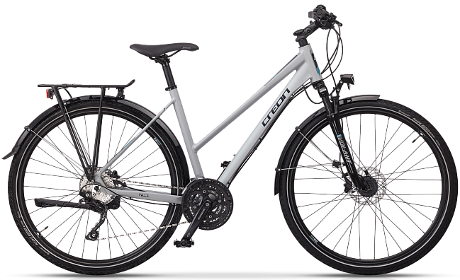 Оснащение спортивного уровня полностью готово к любым приключениям. Надёжная трансмиссия Shimano Deore 3x10 (30 скоростей) обеспечивает огромный диапазон передач для преодоления самых затяжных подъёмов и поддержания скорости на равнине. Мощные гидравлические дисковые тормоза Tektro гарантируют уверенный контроль в любую погоду. Велосипед поставляется с полным комплектом премиальных аксессуаров: яркая передняя фара и задний фонарь питаются от динамо-втулки Shimano (не требуют зарядки и батареек), а фирменные крылья SKS, багажник и подножка делают его готовым к любому маршруту прямо «из коробки».