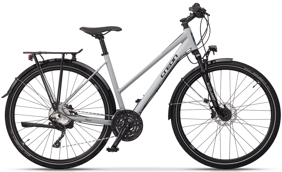 Высококлассный треккинговый велосипед от европейского бренда Creon Trail 5.0 Lady создан для дальних путешествий и самых требовательных городских поездок. Его основа — лёгкая и прочная алюминиевая рама с заниженной геометрией Lady для максимального удобства посадки. За высокий уровень комфорта на дорогах с любым покрытием отвечает амортизационная вилка RST Volant, которая эффективно сглаживает неровности, а также качественное седло Selle Royal и эргономичные грипсы.