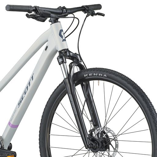 Городской велосипед с удобной заниженной рамой — садиться и сходить просто, без задирания ноги через верхнюю трубу. Scott Sub Cross 30 Slope построен на алюминиевой раме Sub Cross Slope 6061 Custom Butted со скрытой проводкой и комфортной посадкой. Амортизационная вилка SR Suntour NEX с ходом 63 мм сглаживает брусчатку и грунтовые тропинки.
