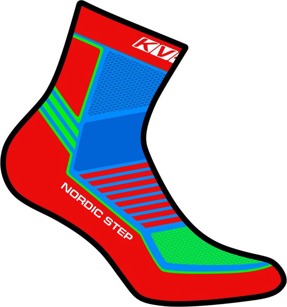 Носки KV+ NORDIC STEP для занятий спортом и активного отдыха. Идеальный вариант для беговых лыж. Яркий дизайн и продуманный крой, носок из эластичных материалов поддерживает стопу и не пережимает сосуды. Носки маркированы буквами L(левый) и R(правый). Вставки с эластичной резинкой для дополнительной поддержки стопы и лучшего кровообращения. Антибактериальная пропитка предотвратит появление неприятного запаха и образования болезнетворных бактерий.