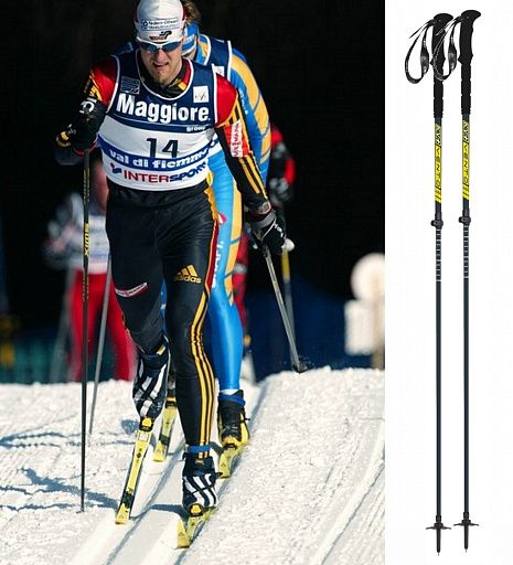 - Лыжные палки: из профессиональных материалов, таких как карбон и алюминий.