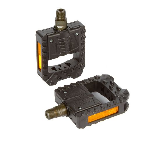 Корпус педалей выполнен из прочного пластика (PC), обеспечивающего лёгкость конструкции, а ось из хромомолибденовой стали (Cr-Mo) с резьбой 9/16″ гарантирует надёжность и долговечность. Педали оснащены встроенными светоотражателями, повышающими видимость и безопасность в условиях ограниченной освещённости.