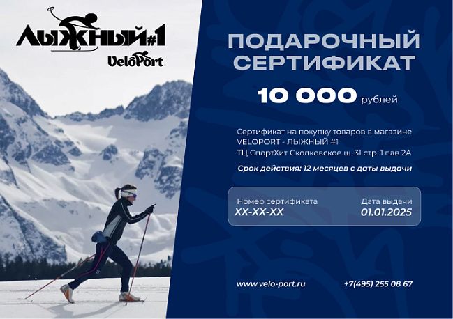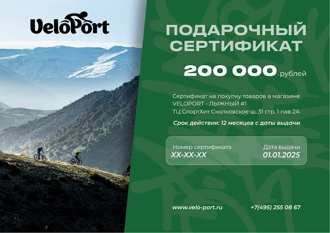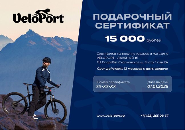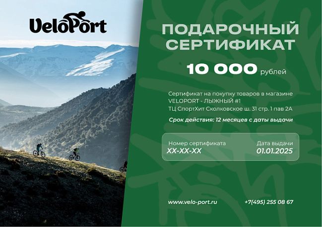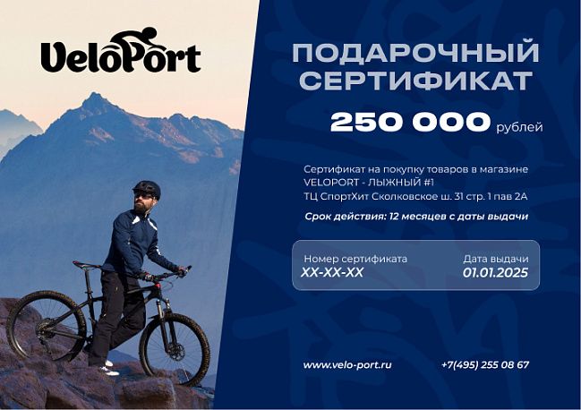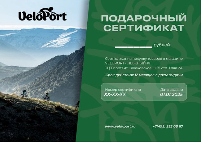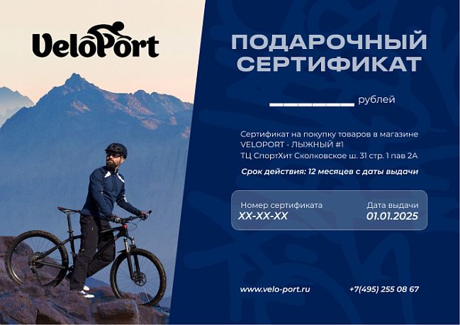 - Сертификат можно обменять на товары, эквивалентные номиналу сертификата, в нашем розничном магазине Velo-Port в ТВК Спортхит, Москва, Сколковское ш. 31с1, а также в интернет-магазине www.velo-port.ru;