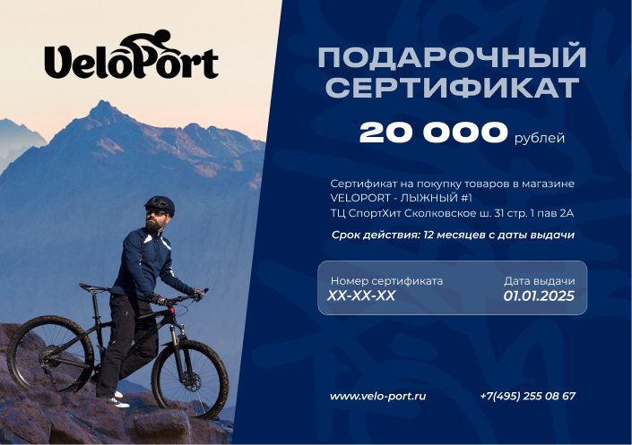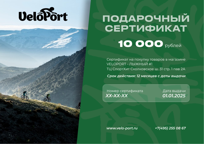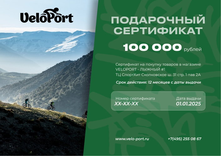 - Сертификат можно обменять на товары, эквивалентные номиналу сертификата, в нашем розничном магазине Velo-Port в ТВК Спортхит, Москва, Сколковское ш. 31с1, а также в интернет-магазине www.velo-port.ru;