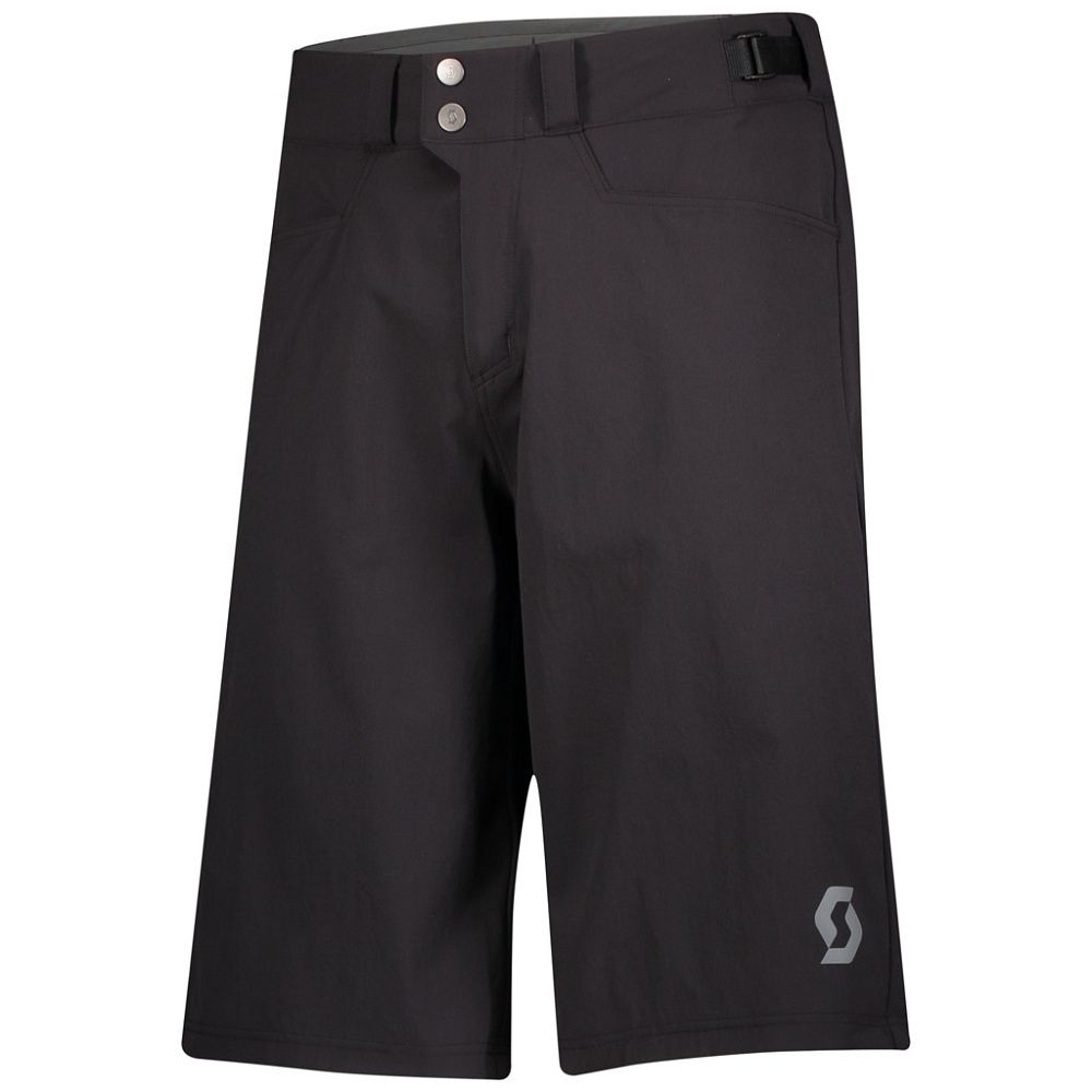 Scott Trail Flow — трейловые шорты в свободном крое для МТБ. Ткань DUROxpand тянется в четырёх направлениях, пропитка DRYOzone без ПФС отталкивает воду на коротком дожде.